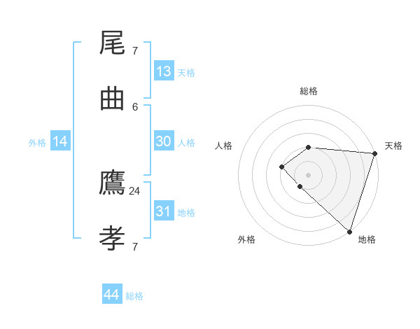 尾曲 鷹孝さんを姓名の画数から五運を鑑定