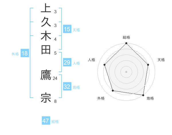 上久木田 鷹宗さんの総格は47画の5点!