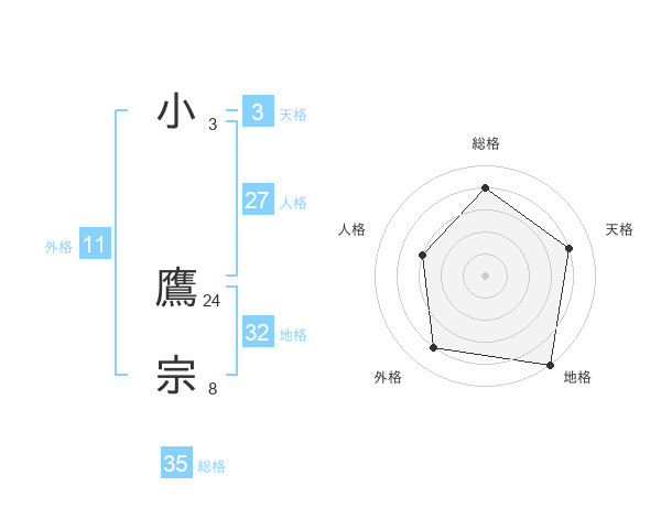 小 鷹宗さんを姓名の画数から五運を鑑定
