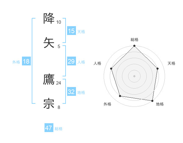 降矢 鷹宗さんの総格は47画の5点!