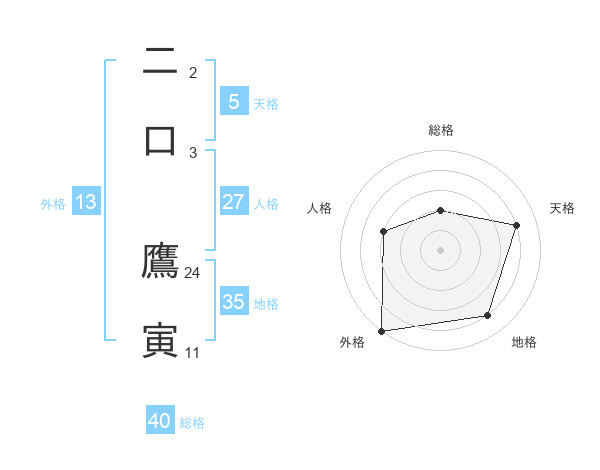 二口 鷹寅さんを姓名の画数から五運を鑑定