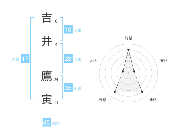 吉井 鷹寅さんの総格は45画の4点!