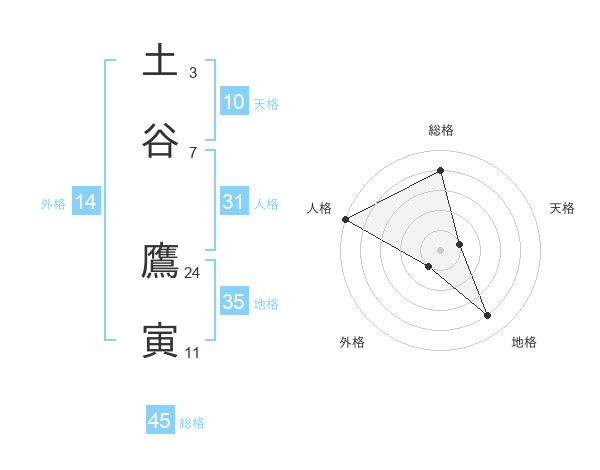 土谷 鷹寅さんを姓名の画数から五運を鑑定