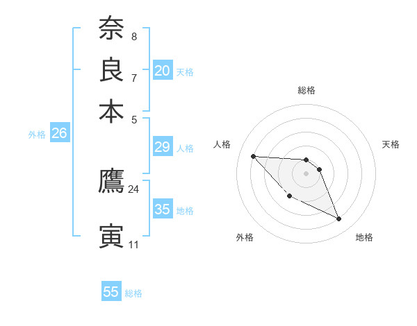 奈良本 鷹寅さんの総格は55画の1点!