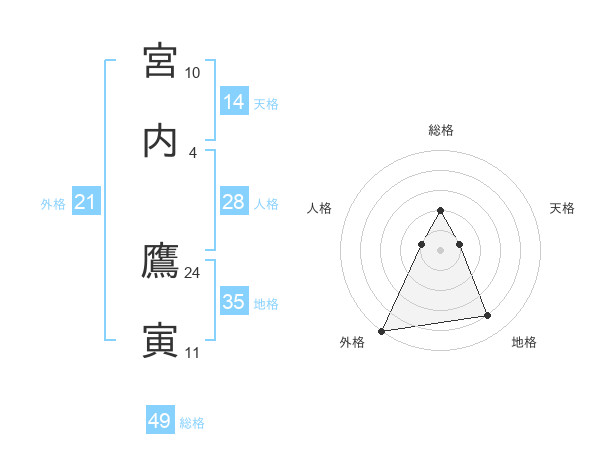 宮内 鷹寅さんを姓名の画数から五運を鑑定