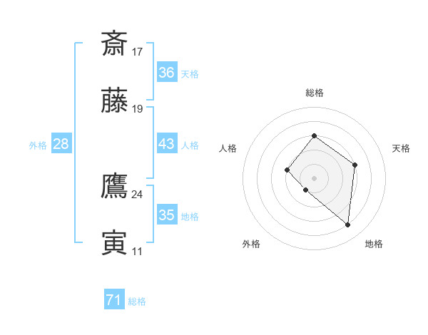 斎藤 鷹寅さんの名前の鑑定結果は!