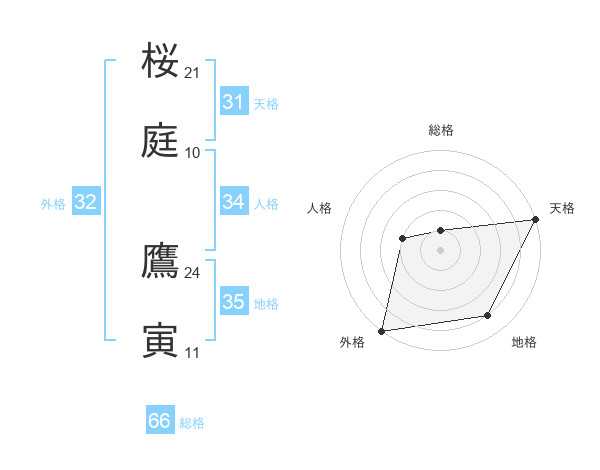 桜庭 鷹寅さんの総格は66画の1点!