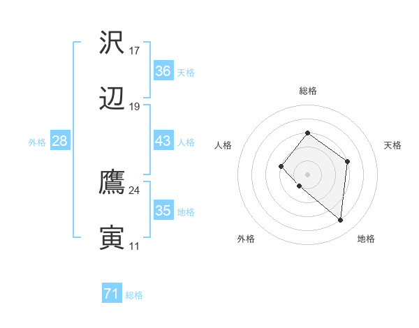 沢辺 鷹寅さんの総格は71画の3点!