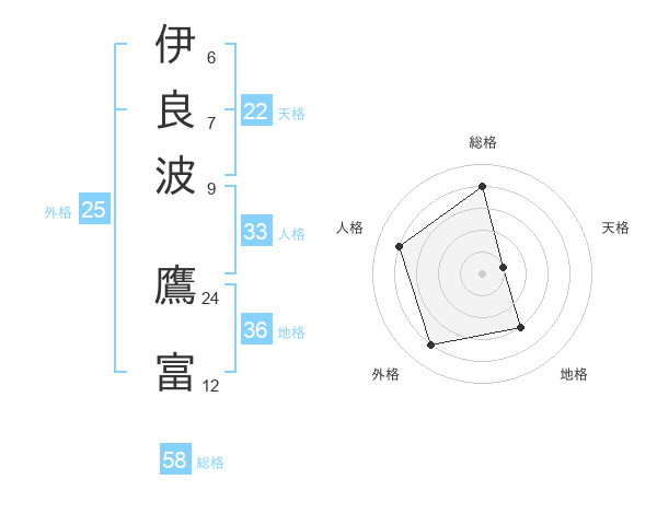 伊良波 鷹富さんを姓名の画数から五運を鑑定