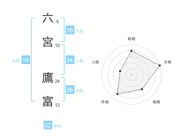 六宮 鷹富さんの総格は52画の4点!