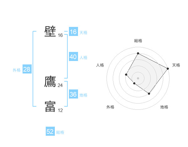 壁 鷹富さんの総格は52画の4点!