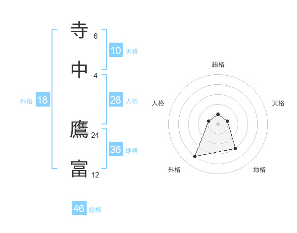 寺中 鷹富さんを姓名の画数から五運を鑑定