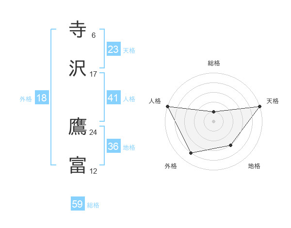 寺沢 鷹富さんを姓名の画数から五運を鑑定