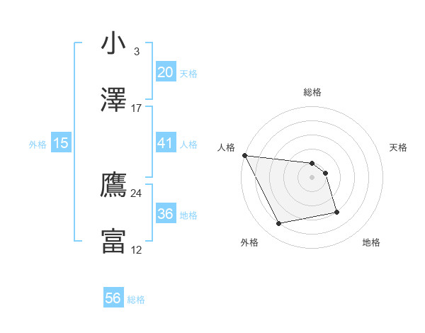 小澤 鷹富さんを姓名の画数から五運を鑑定