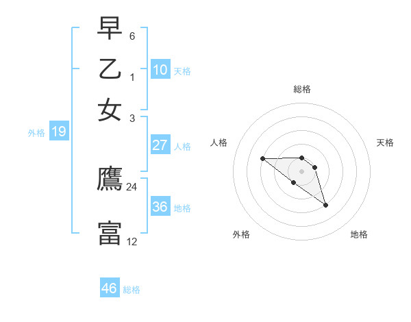 早乙女 鷹富さんの総格は46画の1点!