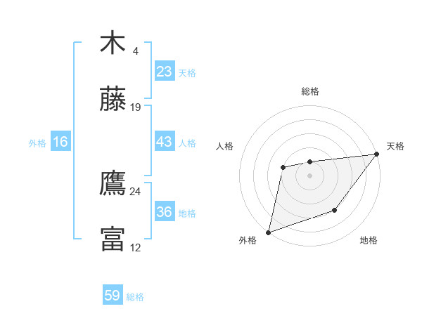 木藤 鷹富さんの総格は59画の1点!