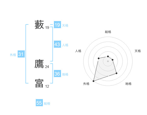 藪 鷹富さんを姓名の画数から五運を鑑定