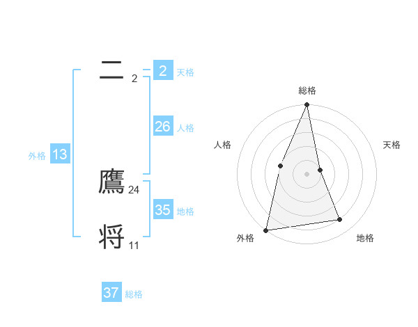 二 鷹将さんの総格は37画の5点!