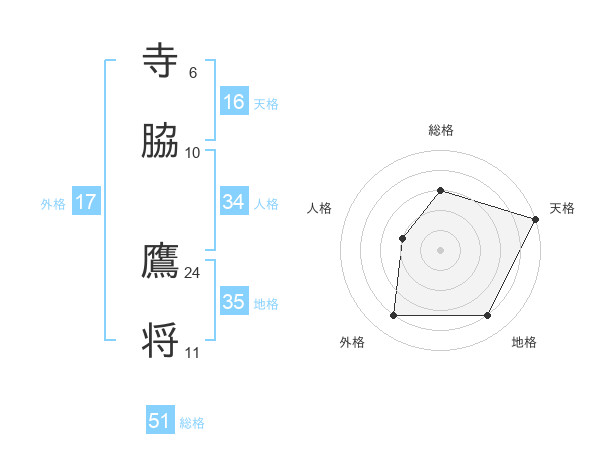 寺脇 鷹将さんの総格は51画の3点!
