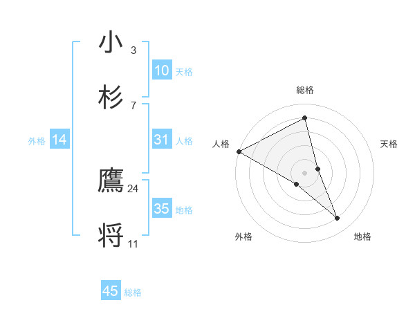 小杉 鷹将さんの総格は45画の4点!