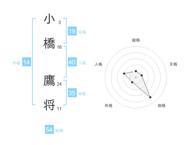 小橋 鷹将さんを姓名の画数から五運を鑑定