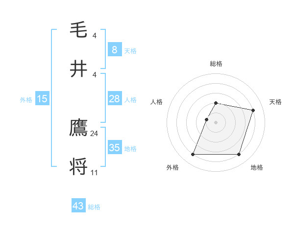 毛井 鷹将さんを姓名の画数から五運を鑑定