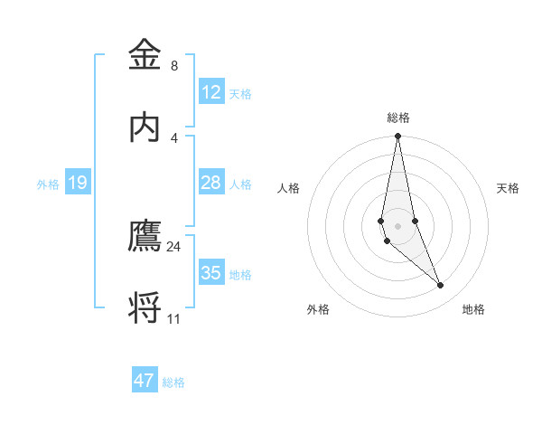 金内 鷹将さんの総格は47画の5点!