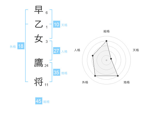 早乙女 鷹将さんを姓名の画数から五運を鑑定