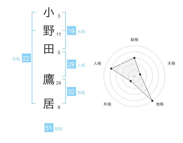 小野田 鷹居さんを姓名の画数から五運を鑑定