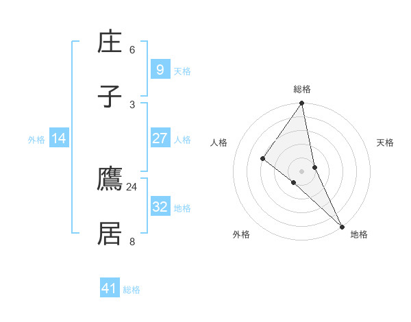 庄子 鷹居さんの総格は41画の5点!
