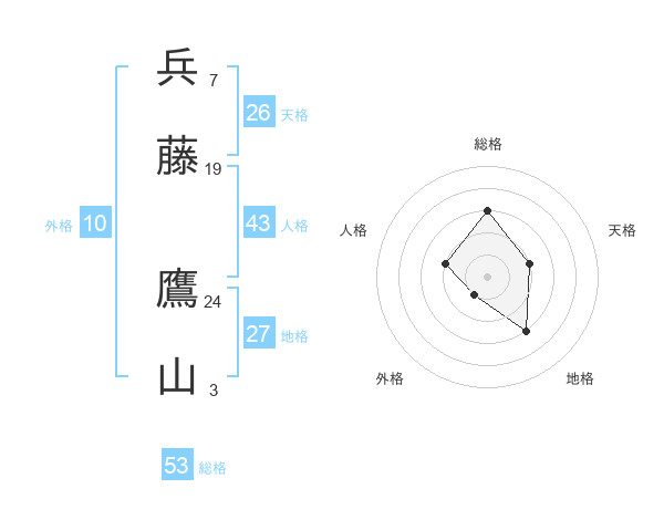 兵藤 鷹山さんを姓名の画数から五運を鑑定