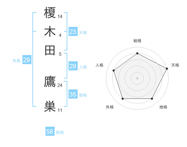 榎木田 鷹巣さんを姓名の画数から五運を鑑定