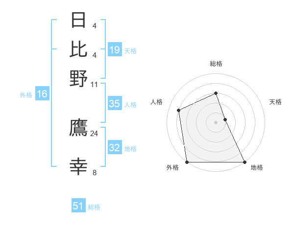日比野 鷹幸さんを姓名の画数から五運を鑑定
