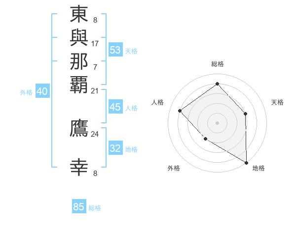 東與那覇 鷹幸さんの総格は85画の4点
