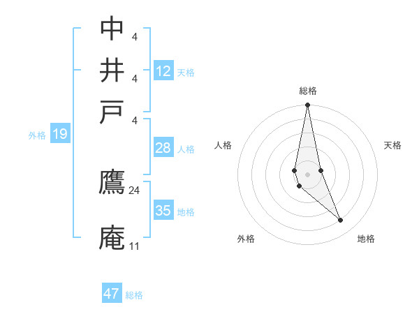 中井戸 鷹庵さんの総格は47画の5点!