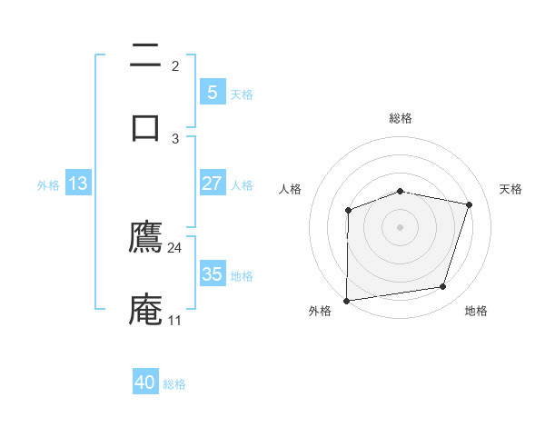 二口 鷹庵さんの外格は13画の5点!