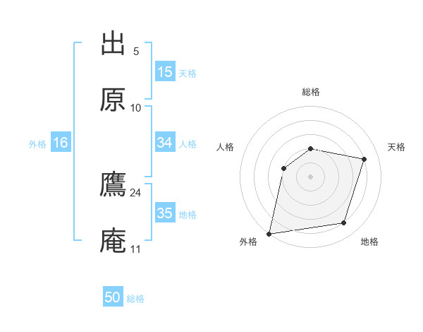 出原 鷹庵さんを姓名の画数から五運を鑑定