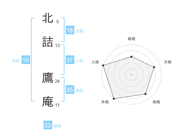 北詰 鷹庵さんの総格は53画の3点!
