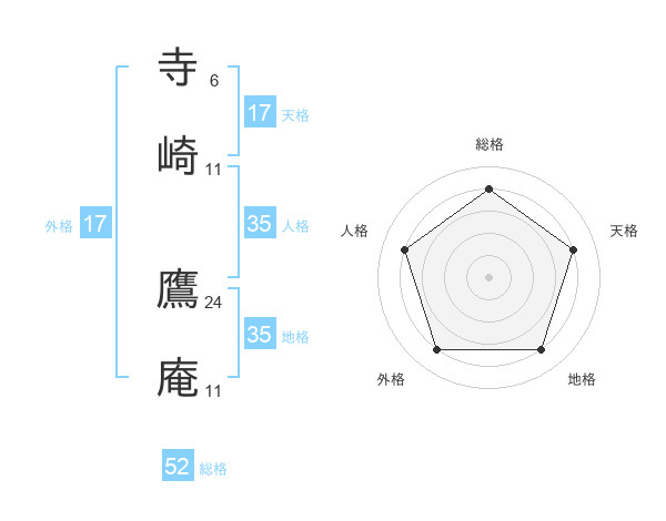 寺崎 鷹庵さんの総格は52画の4点!