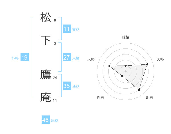 松下 鷹庵さんの天格は11画の4点!