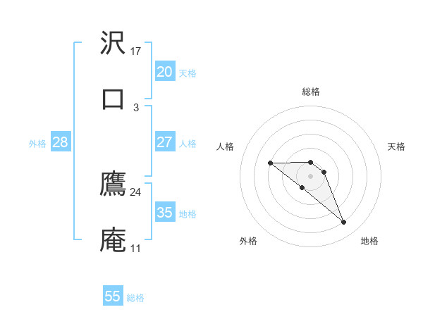 沢口 鷹庵さんを姓名の画数から五運を鑑定