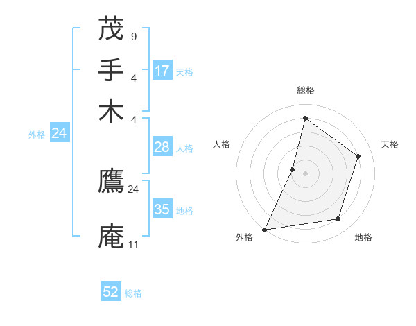 茂手木 鷹庵さんを姓名の画数から五運を鑑定