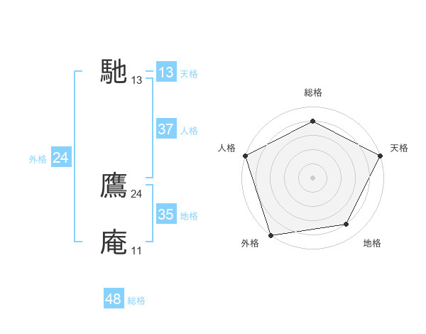 馳 鷹庵さんを姓名の画数から五運を鑑定