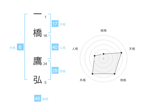 一橋 鷹弘さんを姓名の画数から五運を鑑定