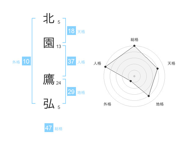 北園 鷹弘さんの総格は47画の5点!