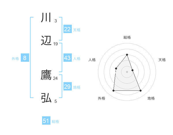 川辺 鷹弘さんを姓名の画数から五運を鑑定