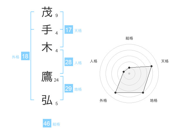 茂手木 鷹弘さんを姓名の画数から五運を鑑定