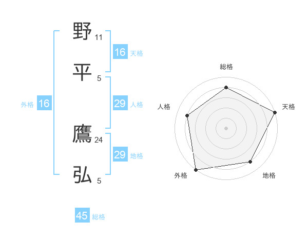 野平 鷹弘さんを姓名の画数から五運を鑑定