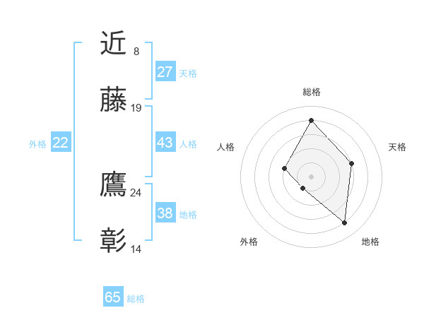 近藤 鷹彰さんの総格は65画の4点!