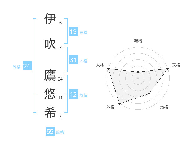 伊吹 鷹悠希さんを姓名の画数から五運を鑑定